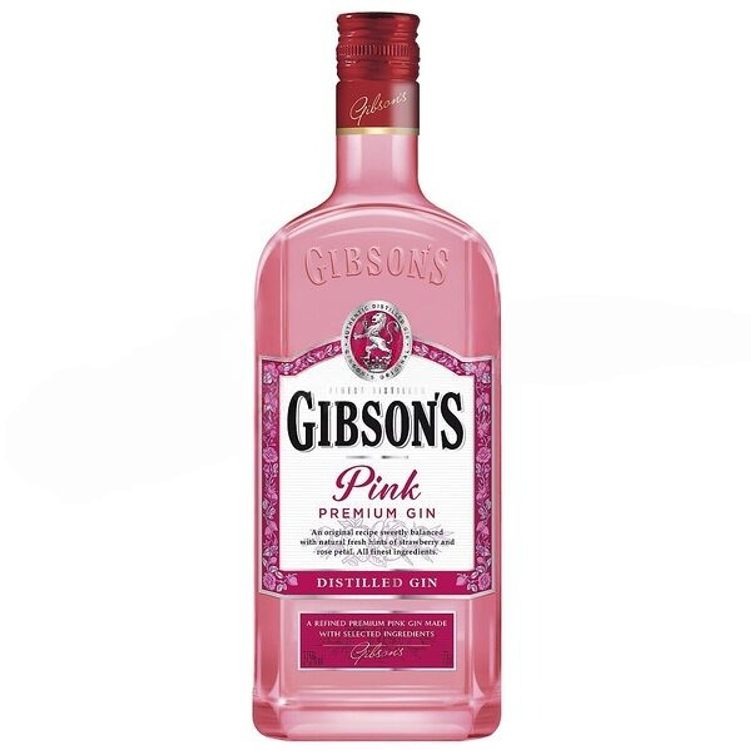 Gibson’s Pink Gin is a flavored gin produced by La Martiniquaise (England). It builds on Gibson’s traditional London Dry base, adding natural strawberry and rose-petal notes without using added sugar. The recipe also includes citrus peels, coriander, angelica, nutmeg, cinnamon, orris root and other botanicals to balance the flavor. It’s crafted for easy drinking, vibrant cocktails, and a softer gin experience.