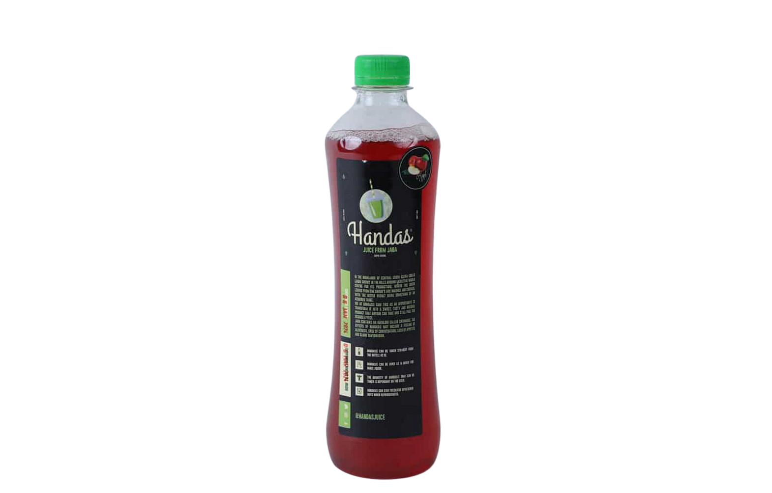 Handas Jaba Juice is a Kenyan beverage that transforms the traditional stimulant khat (locally called jaba or miraa) into a liquid format. The juice is processed by cold-pressing or distillation, then flavored (variants include hibiscus, strawberry, blackcurrant, apple, etc.). The 500 ml plastic bottle version typically refers to its distilled form. It aims to preserve stimulant compounds like cathinone while offering ease of drinking and portability. The business also markets sparkling variants.