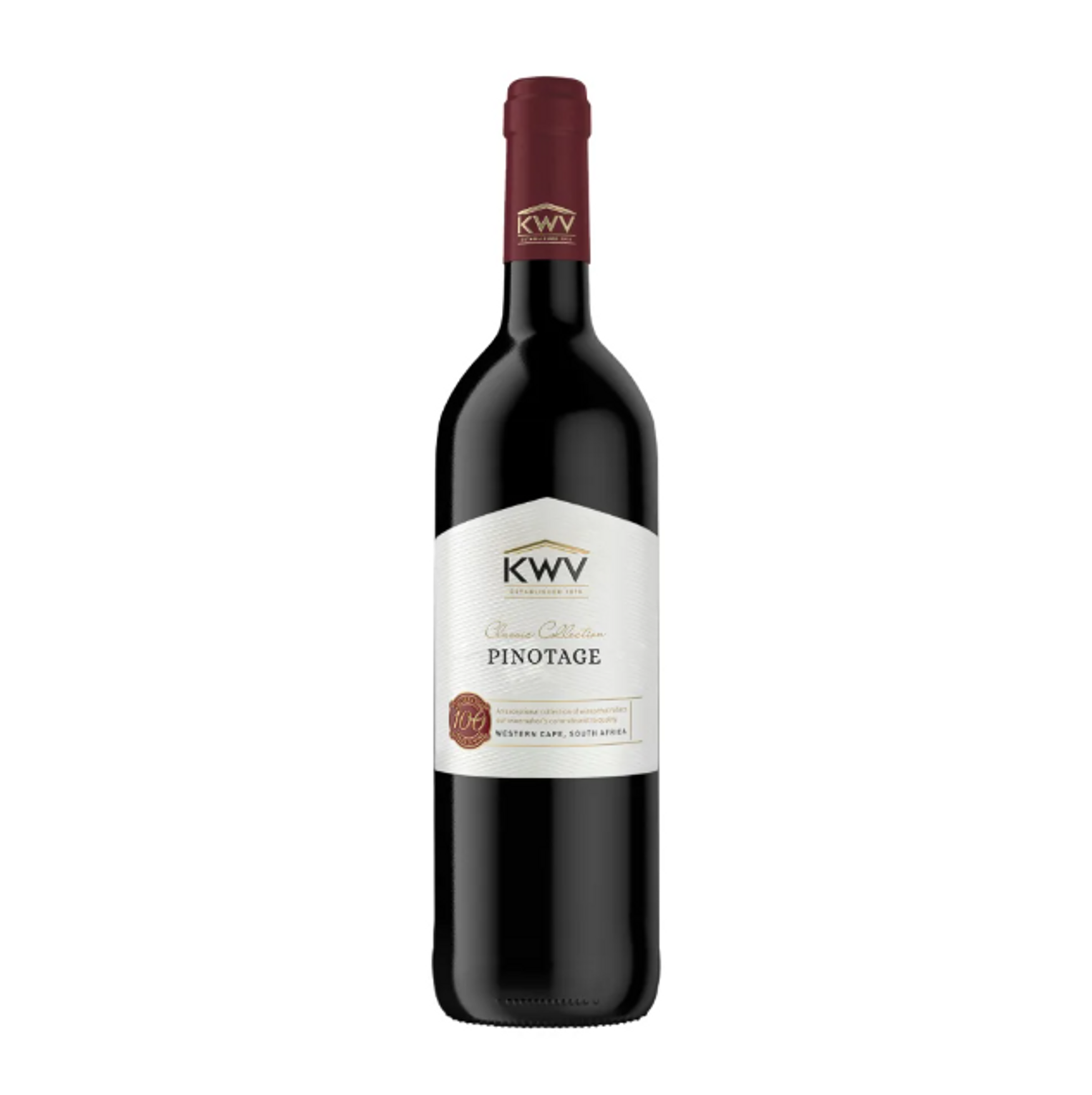 KWV Classic Collection Pinotage is a 100% Pinotage red wine produced by KWV, one of South Africa's most renowned wine producers. The wine showcases the true varietal characteristics of Pinotage, a grape variety unique to South Africa, known for its deep red color and bold flavors. This expression is crafted to highlight the rich fruit profile and smooth tannins that define the Pinotage style.