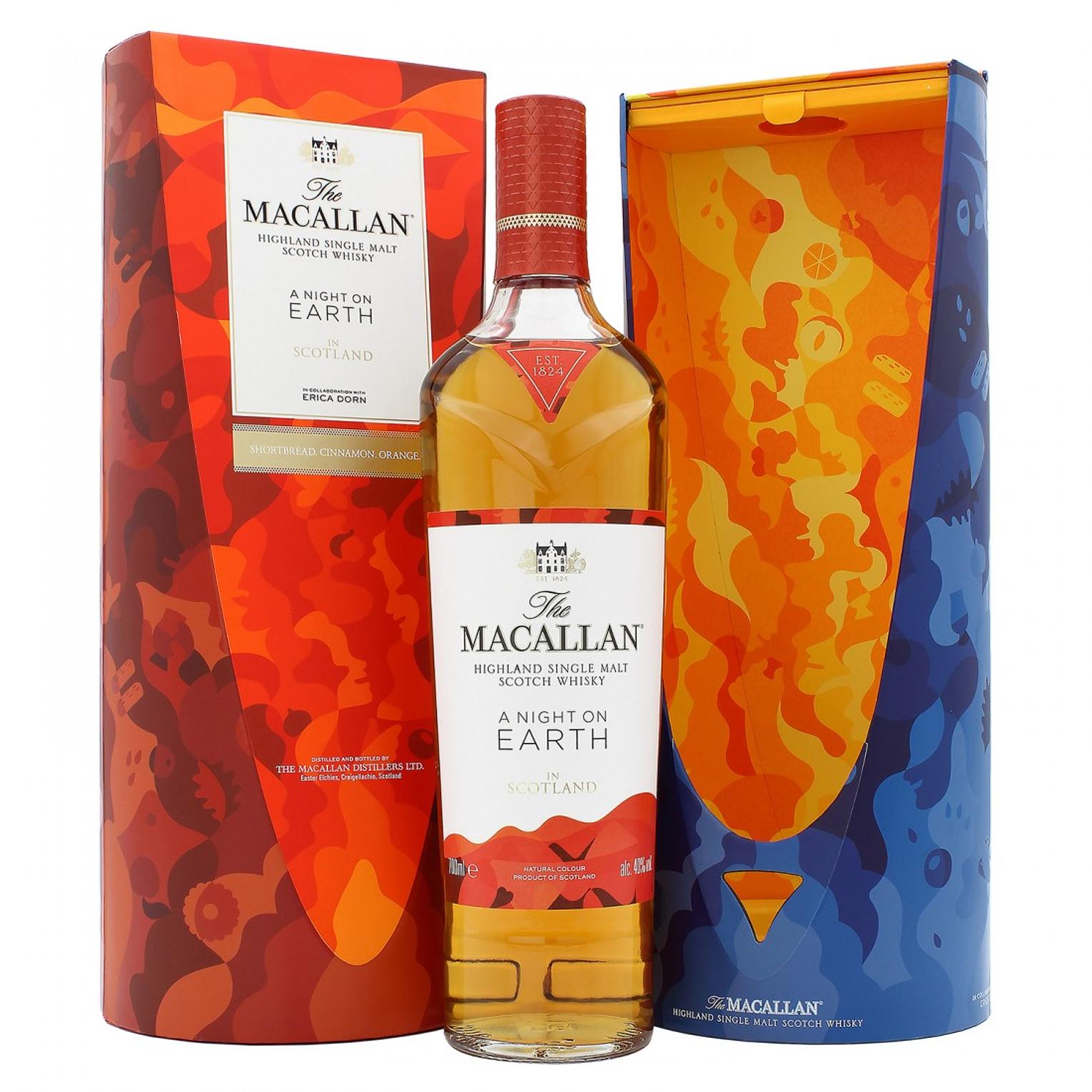The Macallan “A Night on Earth” (also titled A Night on Earth in Scotland) is a limited-edition single malt Scotch whisky from Speyside. It is inspired by the Scottish Hogmanay New Year festivities, with evocative packaging and design to match—complemented by its flavour profile. The whisky is matured in a mix of American and European oak sherry-seasoned casks plus American ex-bourbon barrels, which impart layers of richness and seasonal warmth. It aims to capture the comfort of festive traditions, blending sweet oak influence with gentle fruit and biscuit notes.