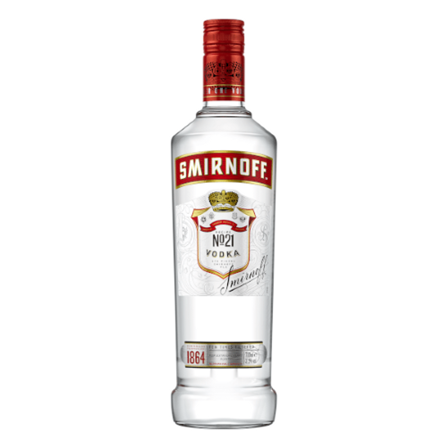 Introducing the classic Smirnoff Red (No. 21) Vodka in a quarter-liter bottle. It’s produced by Diageo under the Smirnoff brand, which has roots in the 19th century in Russia. The vodka is made from grain, then distilled multiple times (commonly three) and filtered through charcoal multiple times (often ten), resulting in a spirit designed to be clean, neutral and consistent across markets.