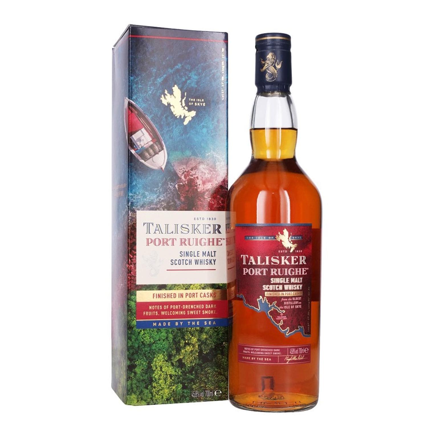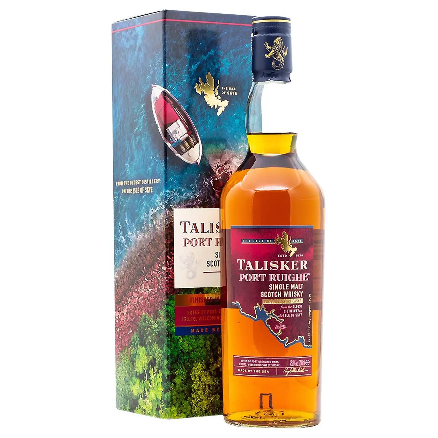 Talisker Port Ruighe is a No-Age-Statement single malt Scotch whisky from the Talisker Distillery on the Isle of Skye. It’s matured initially in ex-bourbon and European oak casks, then finished in ruby Port wine casks. Bottled at 45.8% ABV, it seeks to blend Talisker’s signature peat, sea salt and smoke with richer red fruit and wine-cask influence.
